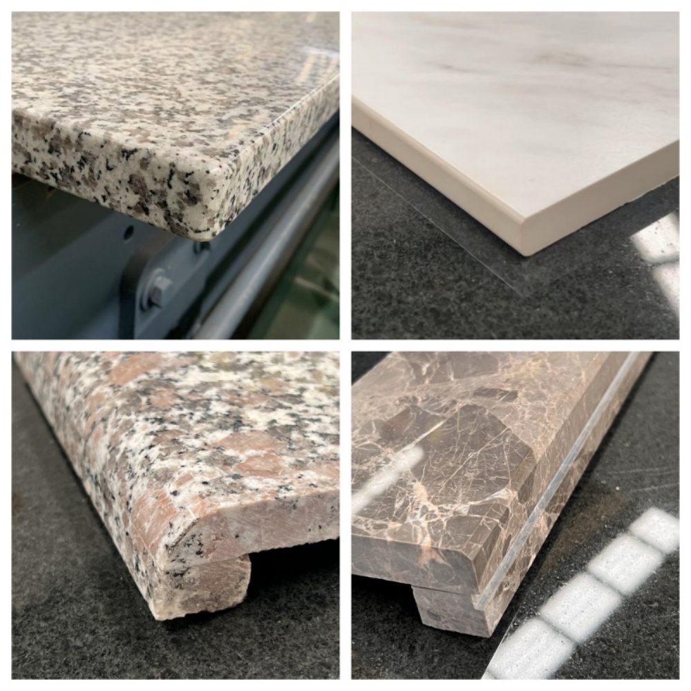 La profileuse de chants de pierre est conçue pour le traitement de divers types de pierre, notamment le marbre, le granit, le quartz et la pierre frittée. Elle permet de produire en continu divers profils de chants, tels que des chants demi-arrondis, des chants arrondis complets, des chants arrondis et des chanfreins, avec un brillant élevé et un rendement élevé.
